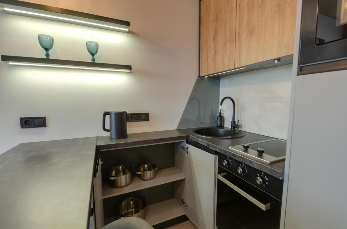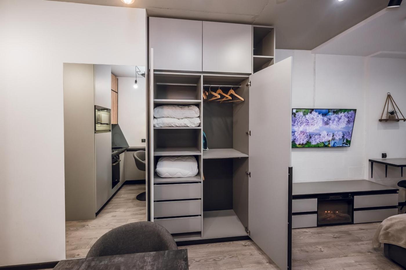 Studio. Guests will have a special experience as this studio provides a fireplace. Offering free toiletries, this studio includes a private bathroom with a shower and a hairdryer. Meals can be prepared in the kitchenette, which is fitted with a stovetop, a refrigerator, kitchenware and an oven. The air-conditioned studio offers a flat-screen TV, a washing machine, soundproof walls, a wardrobe as well as city views. The unit offers 2 beds. ;