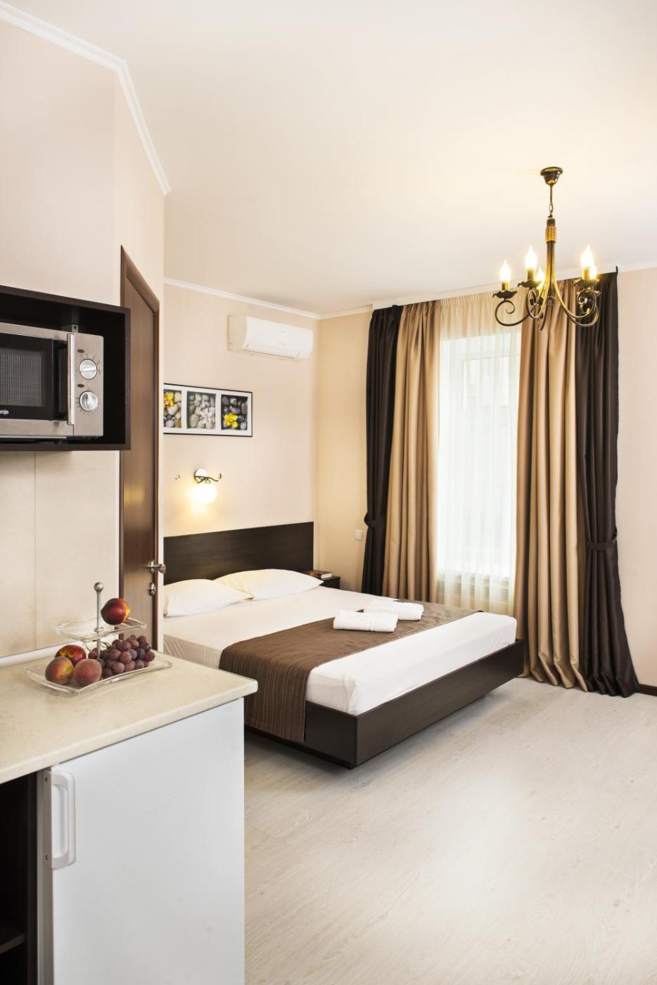 Deluxe Double Studio. The studio includes a private bathroom, well-fitted with a shower, a bidet, a hairdryer and slippers. Guests can make meals in the kitchen that is equipped with a stovetop, a refrigerator, kitchenware and a microwave. The air-conditioned studio provides a flat-screen TV with cable channels, soundproof walls, a dining area, a wardrobe as well as city views.