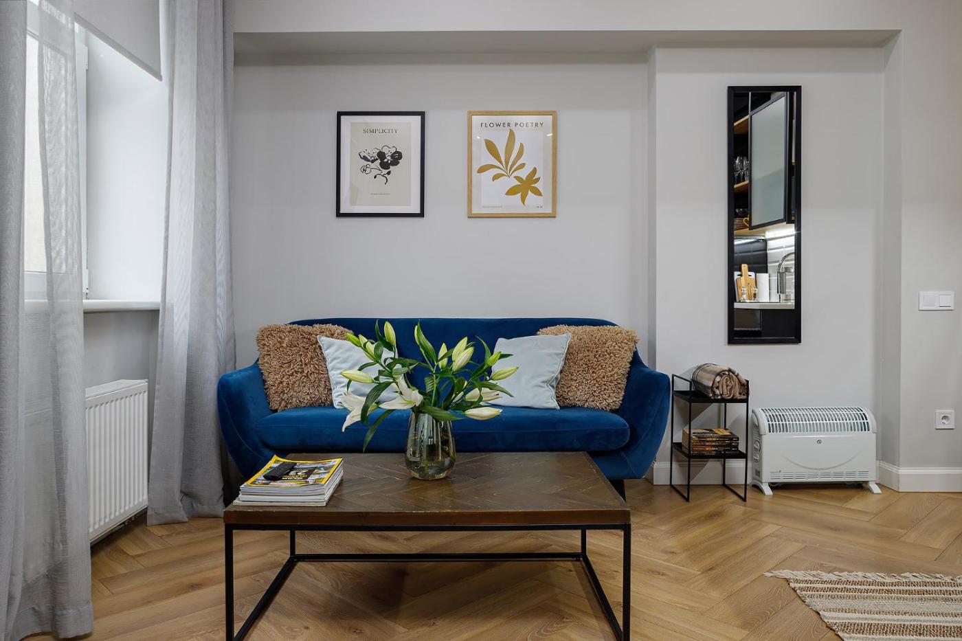 One-Bedroom Apartment. Featuring a private entrance, this apartment also consists of 1 bedroom, a seating area and 1 bathroom with a shower and a hairdryer. In the fully equipped kitchen, guests will find a stovetop, a refrigerator, kitchenware and a microwave. The apartment provides a washing machine, a tea and coffee maker, a dining area, a flat-screen TV, as well as city views. The unit offers 2 beds. ;